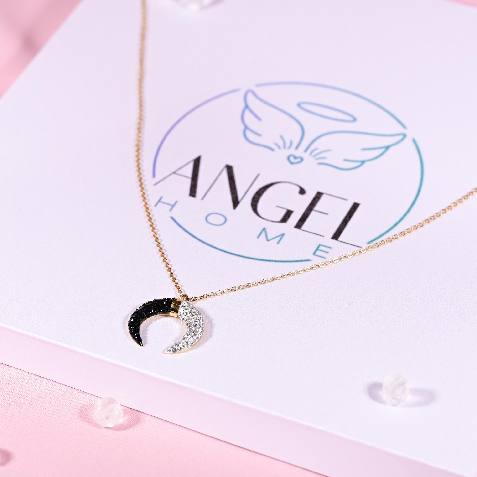 Naszyjnik stal chirurgiczna luna z ksieżycem czarna cyrkonia i biała cyrkonia