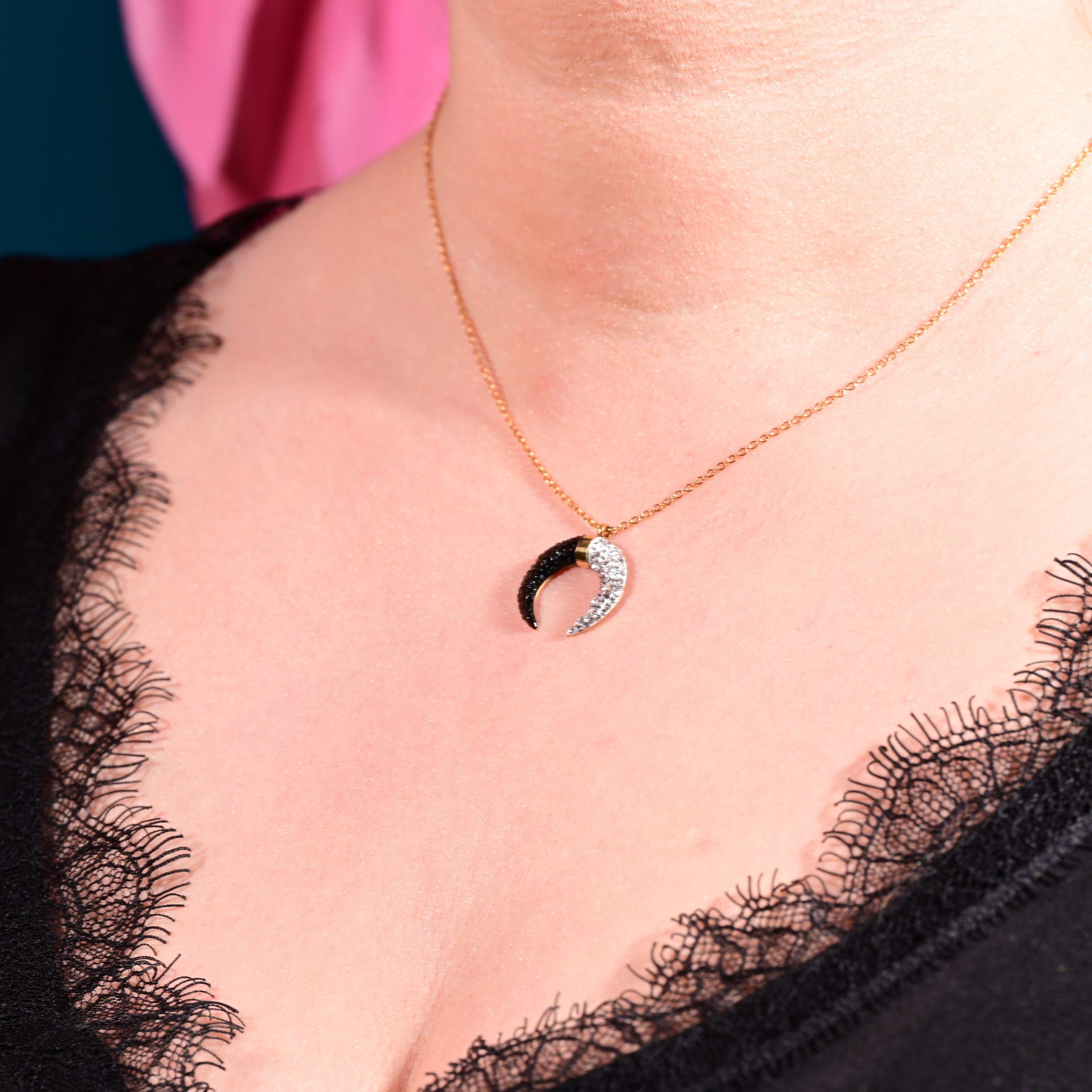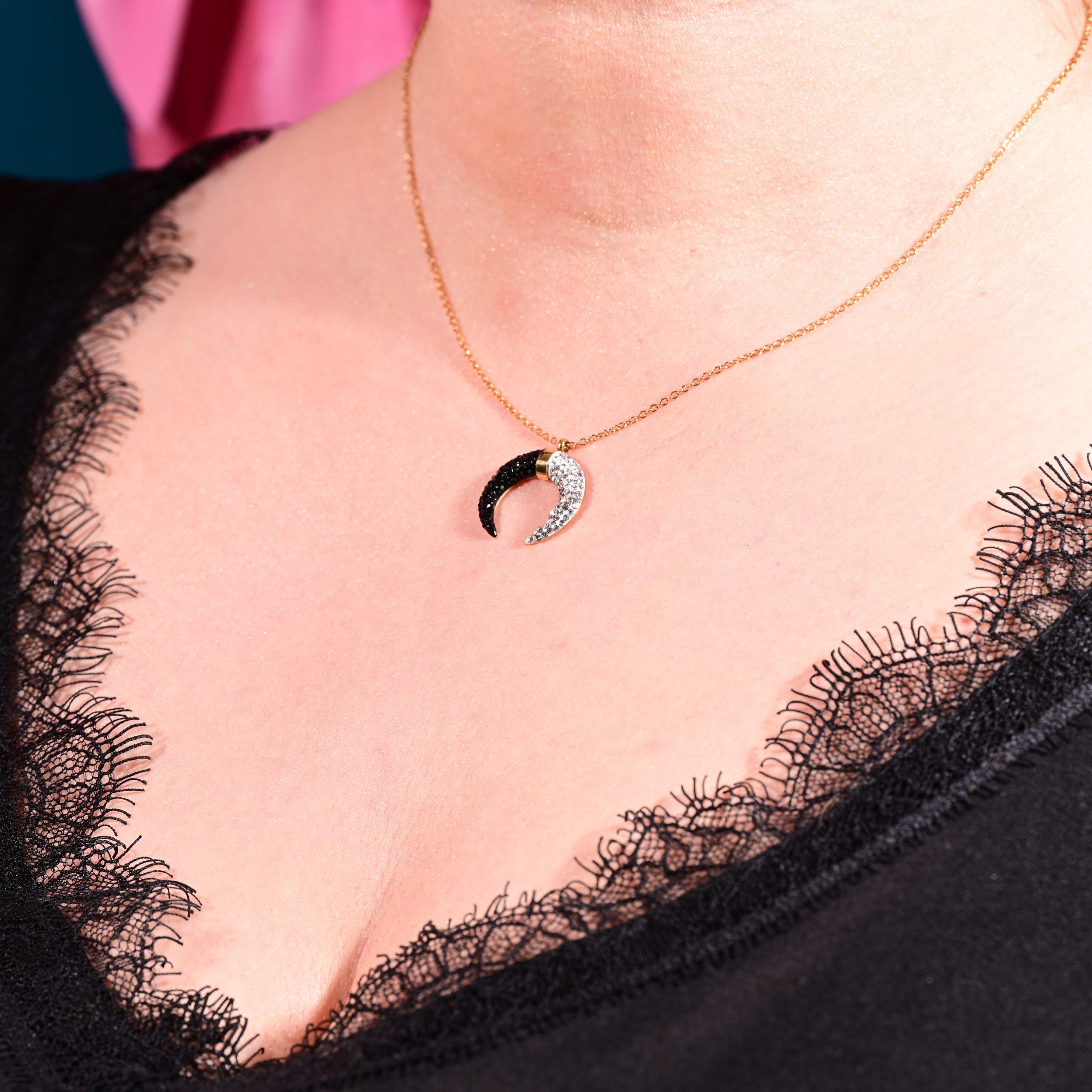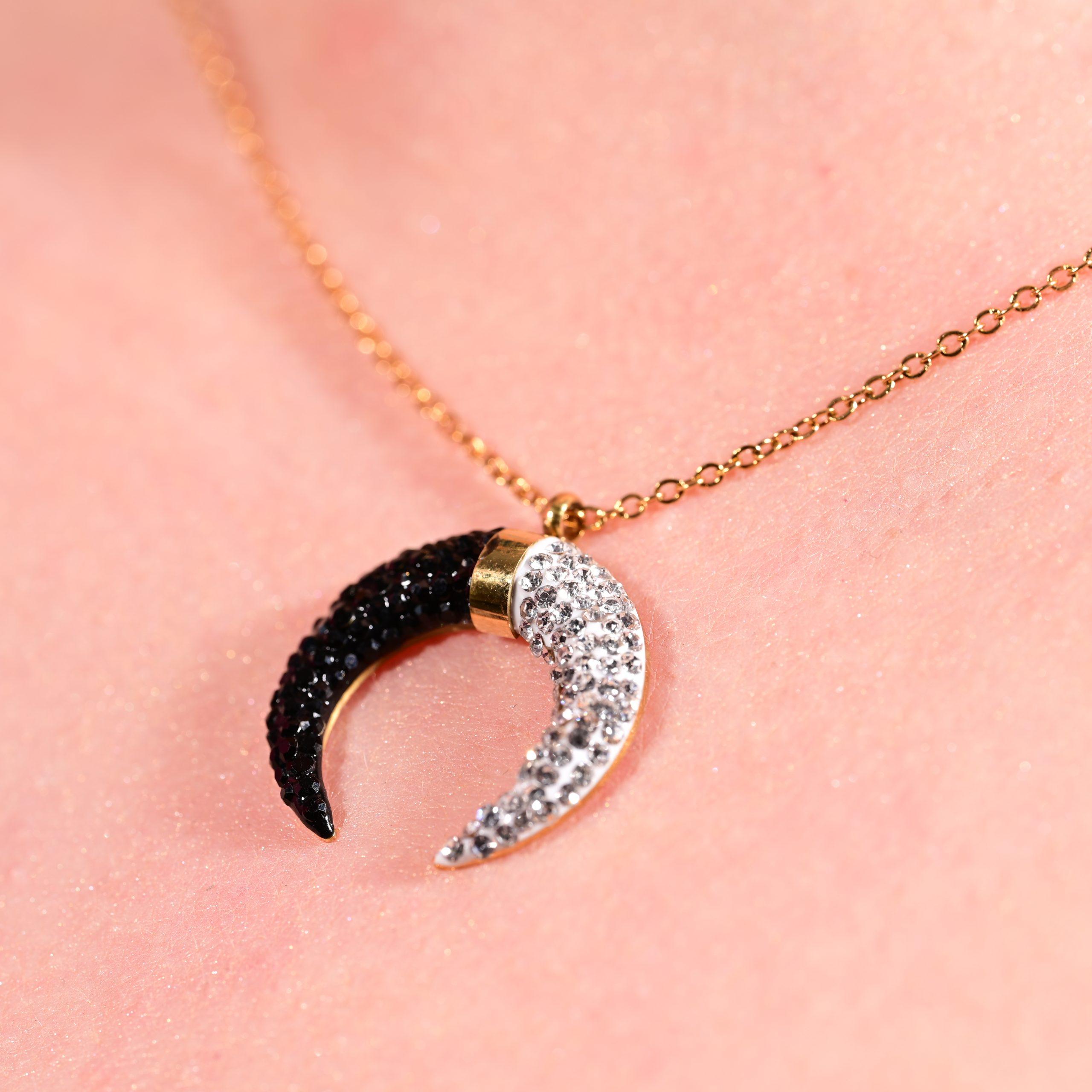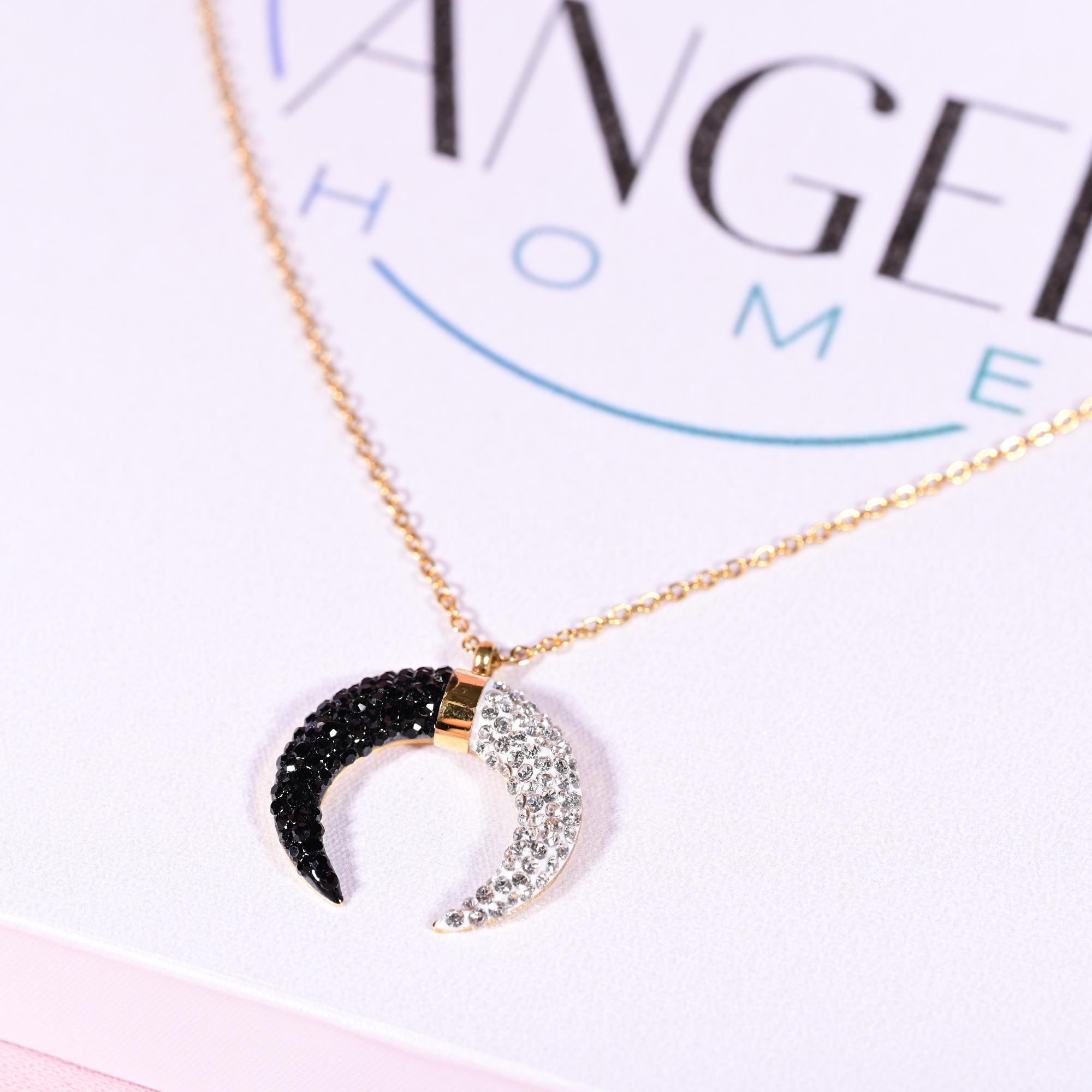 Naszyjnik stal chirurgiczna luna z ksieżycem czarna cyrkonia i biała cyrkonia zapięcie karabińczyk